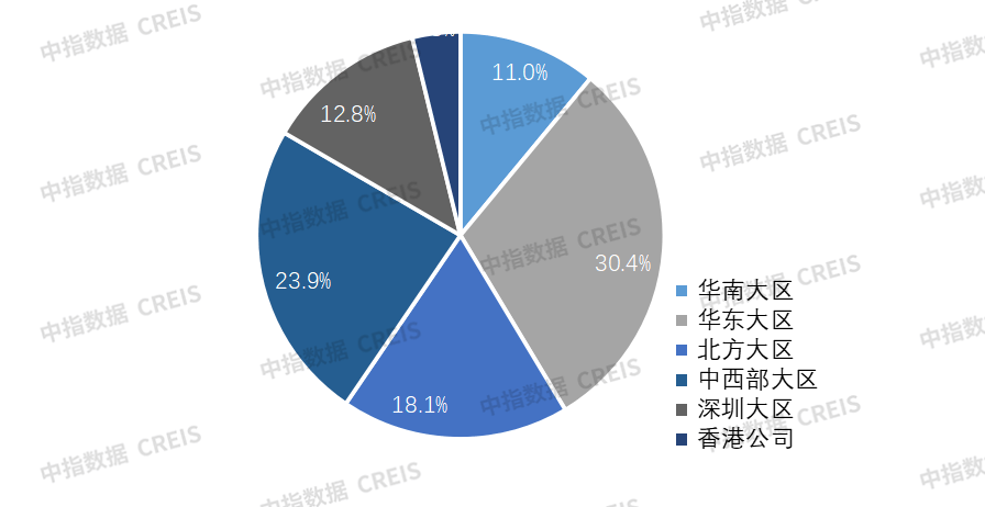 2024年上半年,华润置地实现签约额1247.0亿元,同比下降26.7%;实现签约面积521万平方米,同比减少25.7%。从各区域具体签约情况来看,华东地区和中西部地区销售贡献占比最高,华东地区签约额379.3亿元,占比30.4%;中西部大区签约额297.8亿元,占比23.9%;北方大区签约额225.9亿元,占比18.1%;深圳大区签约160.2亿元,占比12.8%;华南大区签约额137.0亿元,占比11.0%。